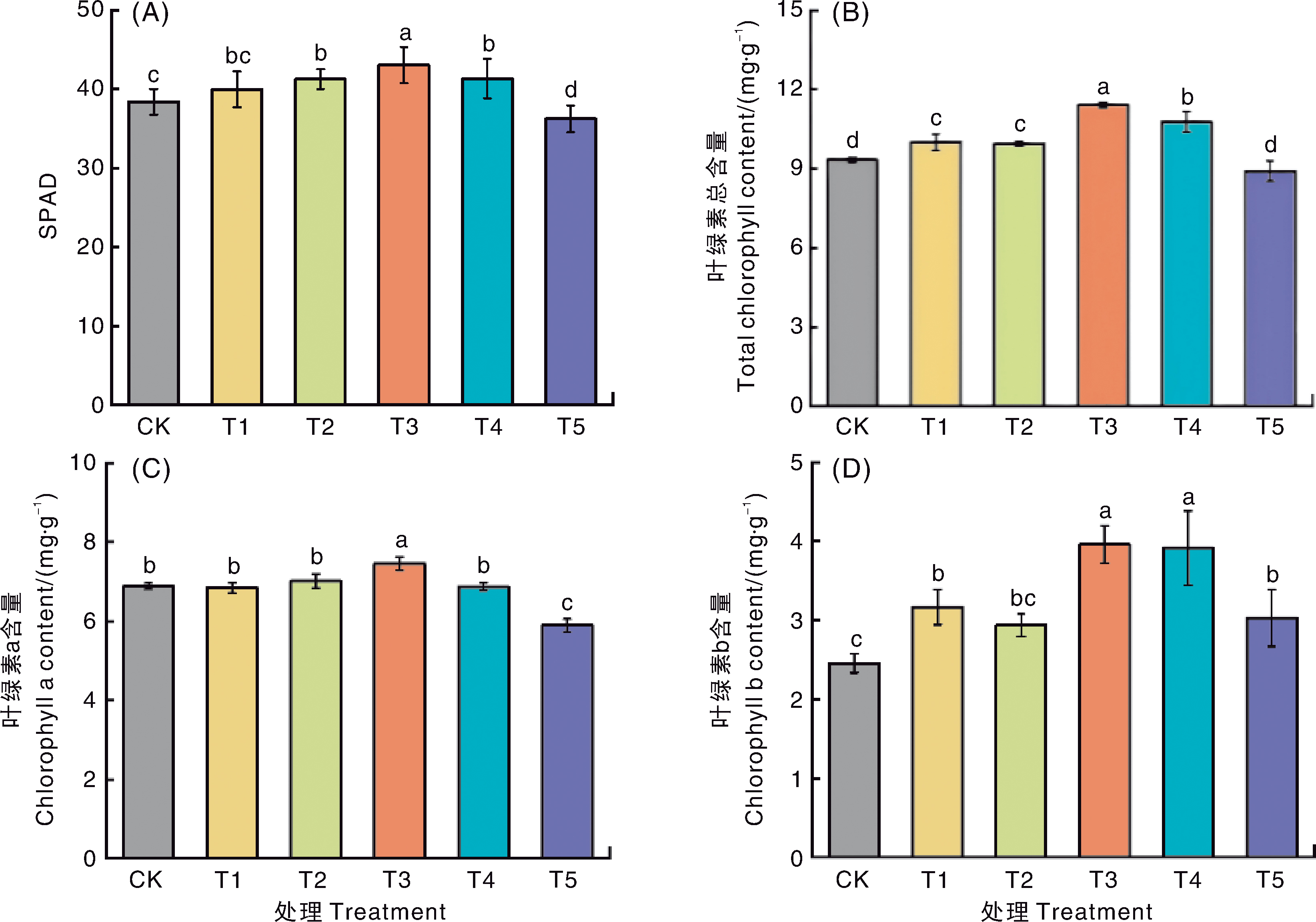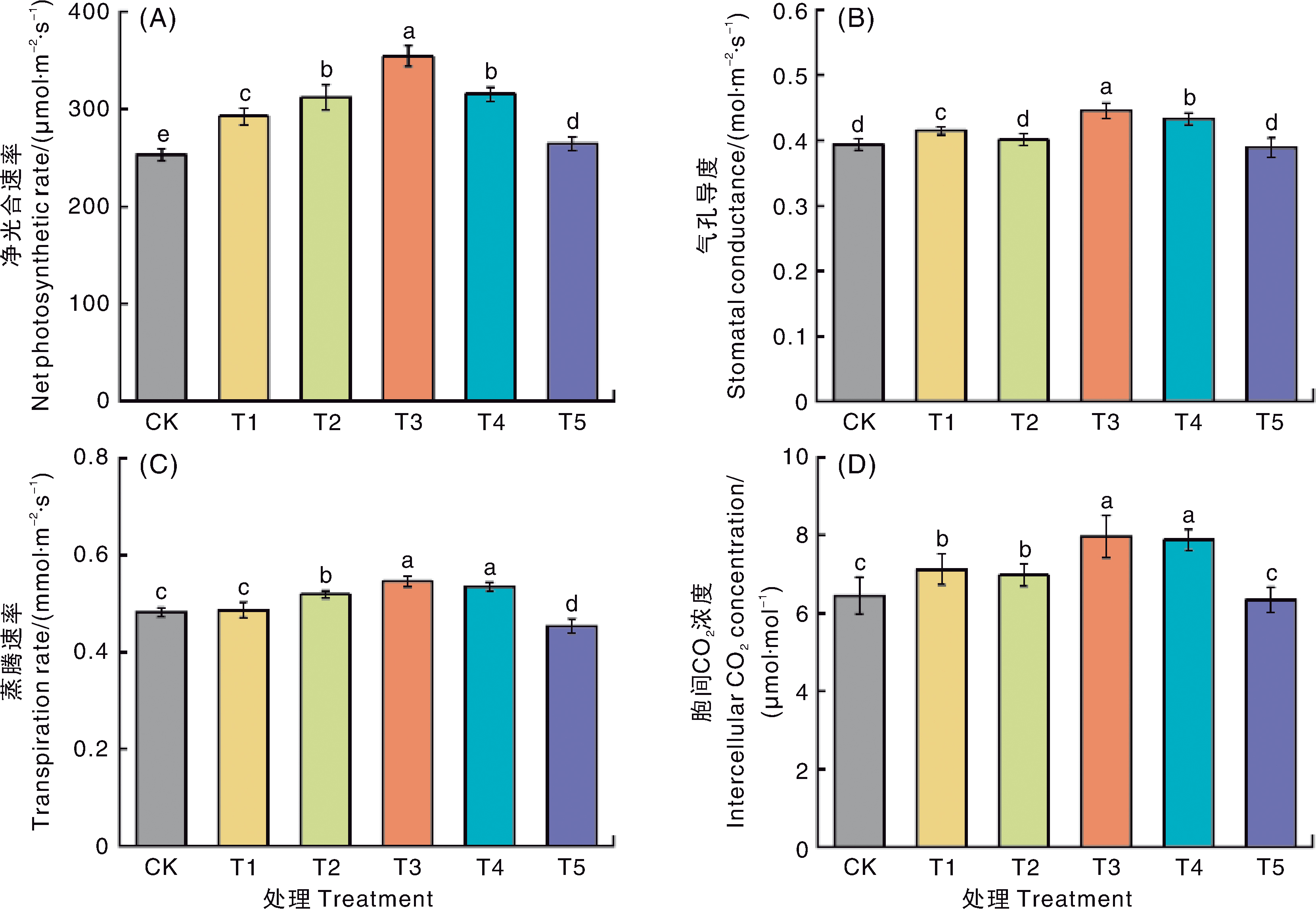 | T4 | 12.77±0.55 b | 0.484±0.019 b | 11.81±0.65 b | 4.00±0.28 b | 1.19±0.09 c | 0.299±0.031 ab |