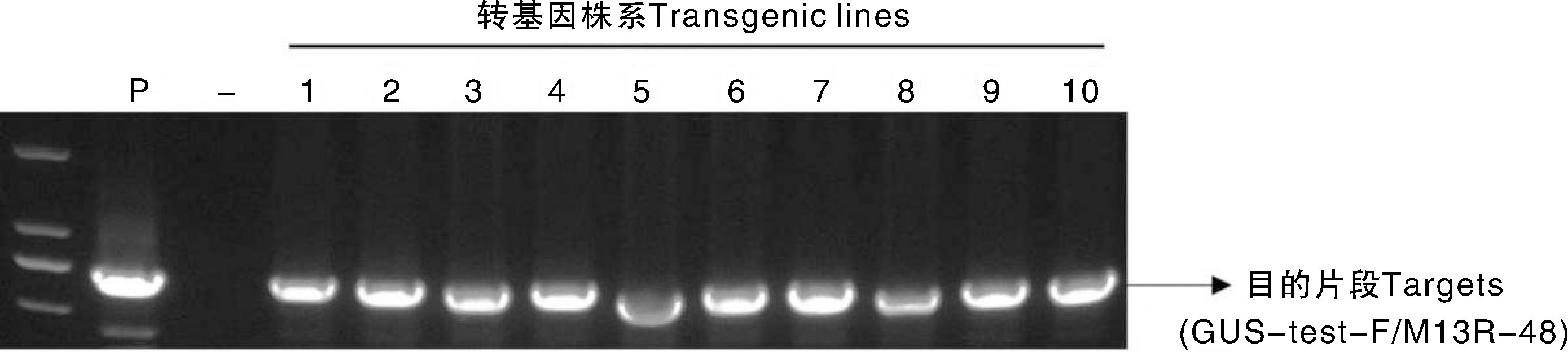 | GUS-test-F | AAGGGATCTTCACTCGCGAC | 阳性鉴定Positive identification |